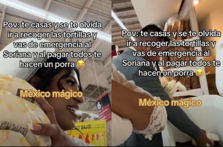 🔸 Karla y su novio acudieron vestidos con sus trajes de boda a comprar tortillas en el supermercado, el video...