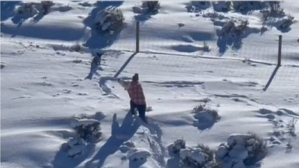 Un video muestra a Yasmin Condos, residente de Evanston, Wyoming, caminando a través de la nieve hasta la cintura a lo largo de la Interestatal 80 para rescatar al cachorro, reportó KUTV, afiliada a CBS.