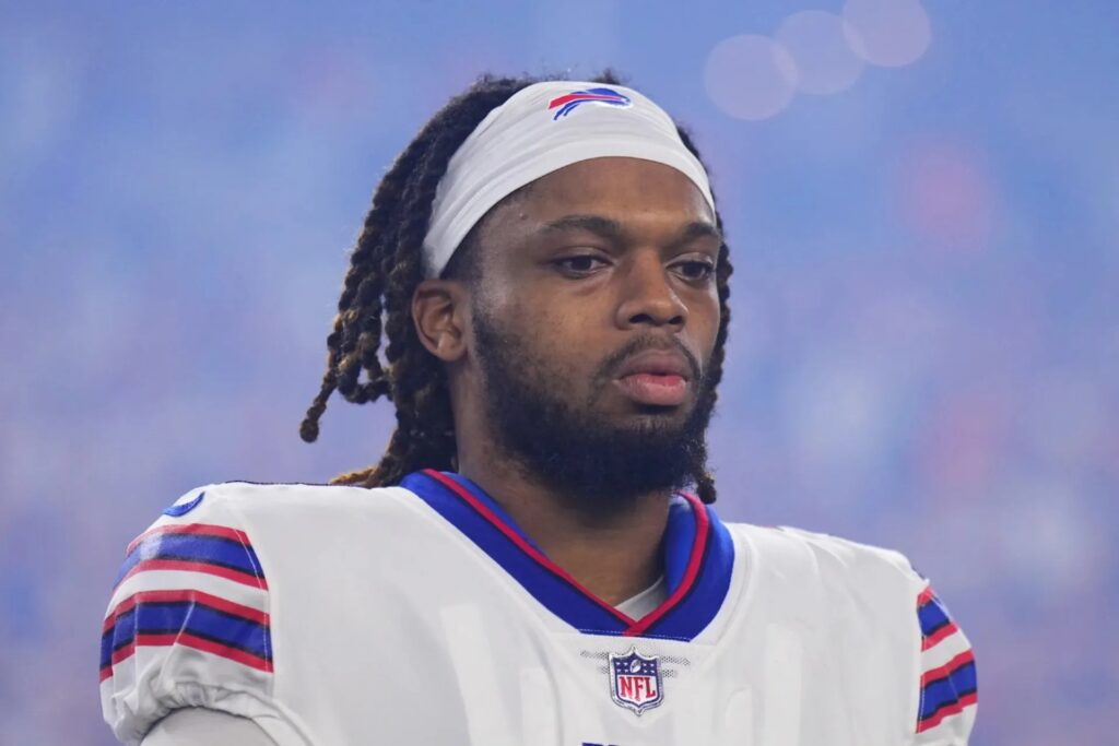 Damar Hamlin, quien en el futbol universitario jugó con los Pittsburgh Panthers, tiene 24 años, llegó a la NFL seleccionado por los Buffalo Bills en la sexta ronda del Draft del 2021.
