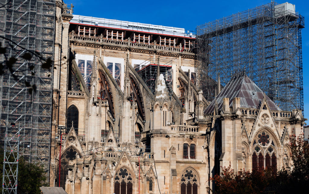 Cathédrale de Notre-Dame en cours de restauration le 12 novembre 2021 à Paris. (Photo by Jon Akira YAMAMOTO/Gamma-Rapho via Getty Images)