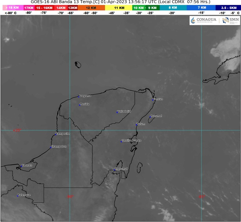 Cielo medio nublado con lluvias aisladas en Quintana Roo y Yucatán. Sin lluvia en Campeche.