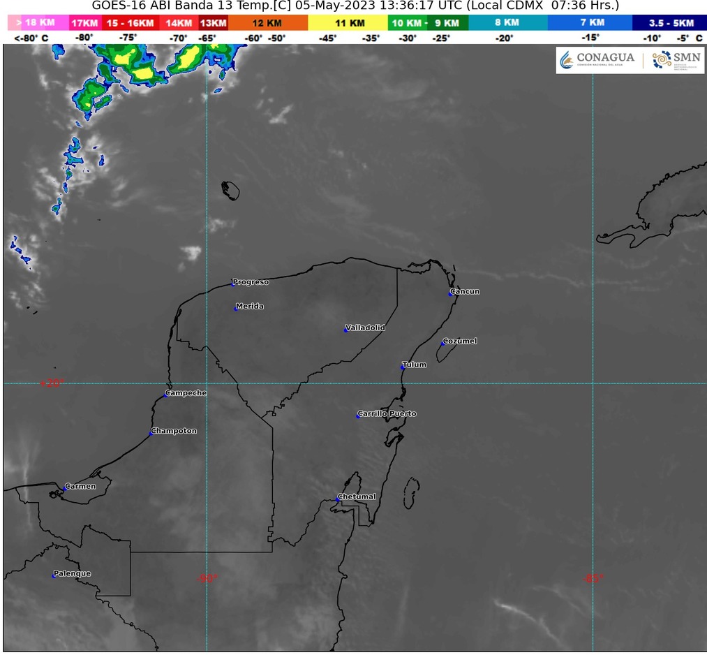 Para la Península de Yucatán se prevé cielo medio nublado a lo largo del día con lluvias aisladas en Campeche y Quintana Roo.
