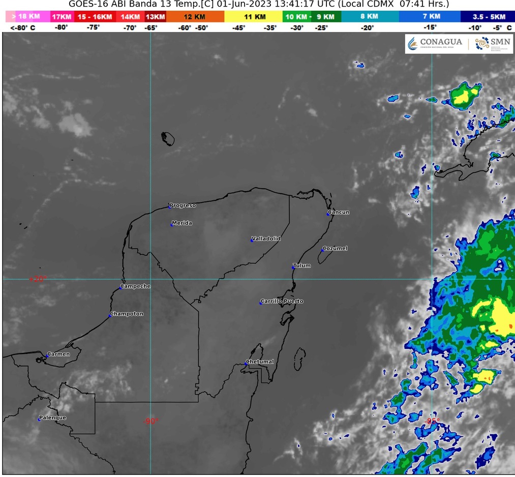Prevén para la Península de Yucatán cielo medio nublado la mayor parte del día, con lluvias e intervalos de chubascos en Quintana Roo, así como lluvias aisladas en Campeche y Yucatán.