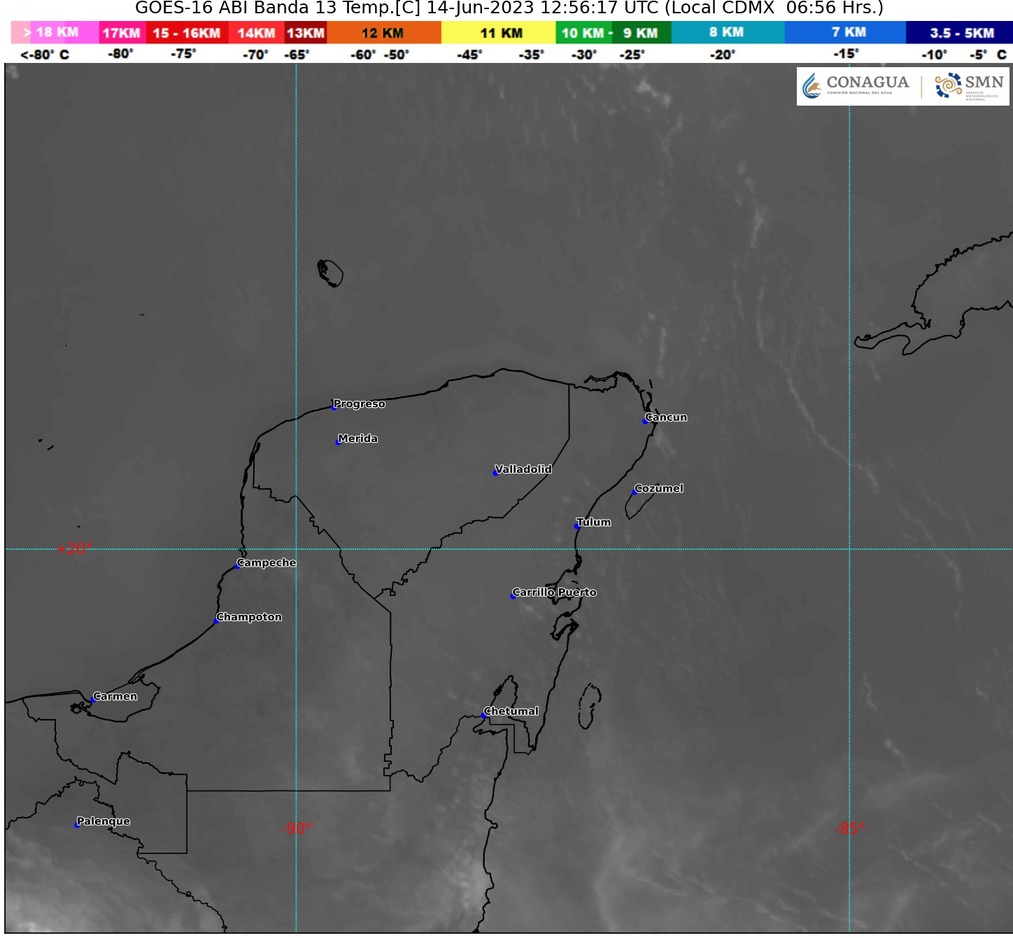 Para la Península de Yucatán esperan cielo parcialmente nublado por la mañana y medio nublado durante la tarde con lluvias aisladas en Quintana Roo y Campeche; sin lluvia en Yucatán.