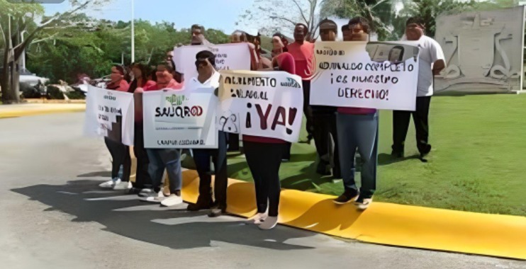 Un grupo de académicos y administrativos de la máxima casa de estudios en Cozumel, se manifestaron este día en las puertas de la UAQROO, su representante Roberto Velázquez, dijo que es en contra del rector Francisco López Mena, por romper las negociaciones de un incremento del 4% salarial, al dejar de estar presente, agrego que también están pidiendo que entre a nueva firma el contrato colectivo de trabajo y el nuevo reglamento administrativo.
