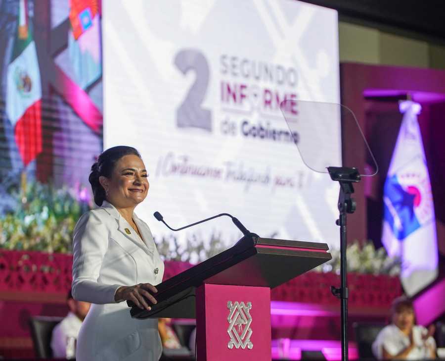 “Prometimos no fallar, y en este segundo año de consolidación, de forma clara y de frente, podemos sostener que hay resultados evidentes con el trabajo realizado. Continuamos trabajando para ti”, refirió la Presidenta municipal de Cozumel, Juanita Alonso Marrufo al rendir su Segundo Informe de Gobierno ante cientos de cozumeleños que se reunieron en el Centro de Convenciones de la Isla para atestiguar los resultados obtenidos por esta administración de la transformación.Acompañada en el presídium por la Gobernadora del Estado de Quintana Roo, Mara Lezama Espinosa; el diputado presidente de la Junta de gobierno y coordinación política de la XVII legislatura del Congreso del Estado, Luis Humberto Aldana Navarro y el magistrado presidente del Tribunal Superior de Justicia y del Consejo de la judicatura del Estado, Heyden José Cebada Rivas, el Cabildo de Cozumel sostuvo su Tercera sesión pública y solemne en la que la presidenta destacó las obras y acciones realizadas a través del manejo responsable y transparente de los recursos. Sin un peso adicional de deuda y sin aumentar los impuestos.