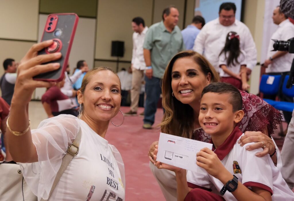 “Así trabajamos ahora, en esta nueva forma de gobernar, todas y todos, juntas y juntos, trayendo justicia social con programas sociales que contribuyan en el desarrollo de la vida estudiantil, de la vida de las familias, para que marquen una diferencia en su propia vida” les dijo la gobernadora de Quintana Roo.