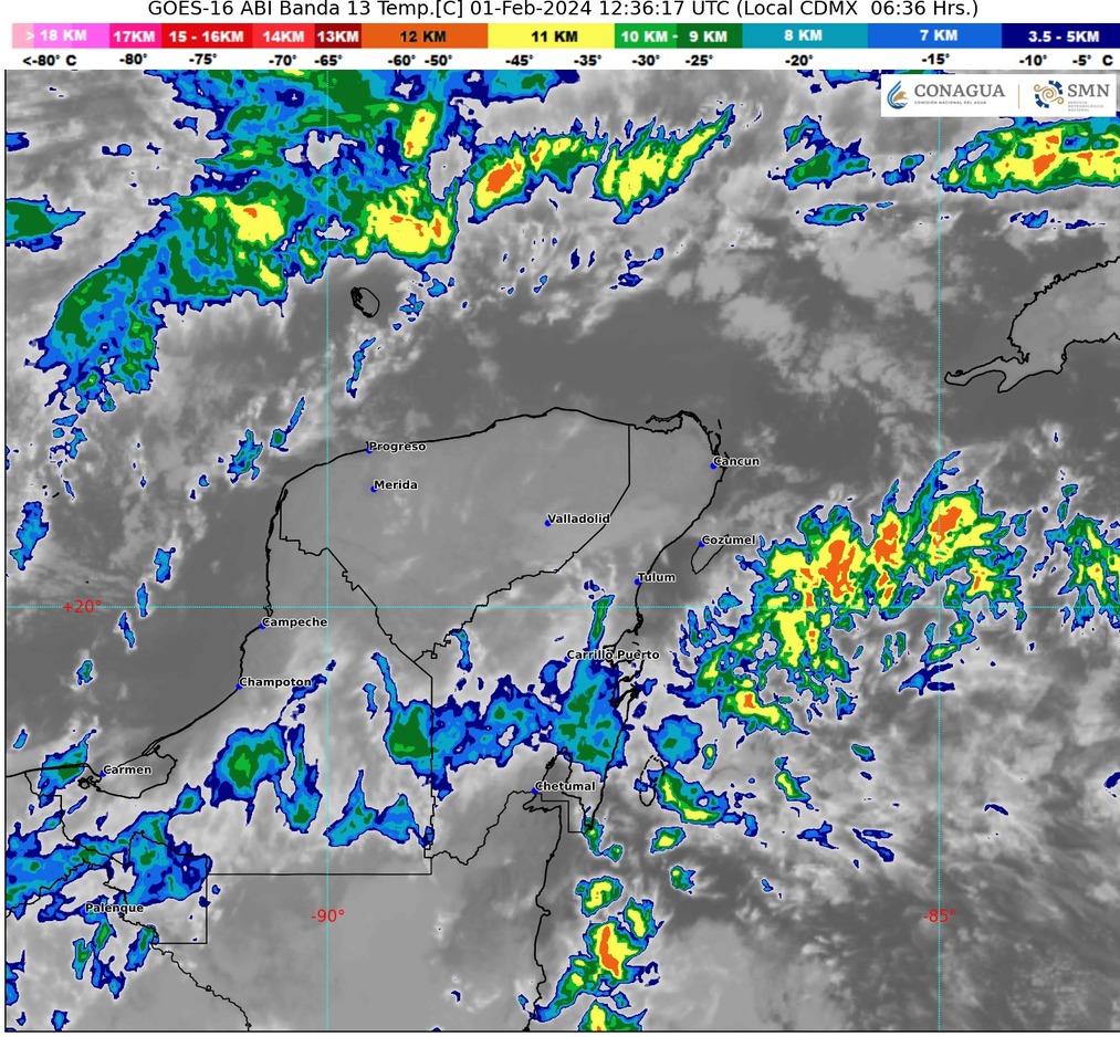 Cielo medio nublado la mayor parte del día. Probabilidad de lluvias aisladas en zonas de Quintana Roo, y sin lluvia en Campeche y Yucatán. Ambiente fresco por la mañana y templado a cálido por la tarde. Viento del este y noreste de 10 a 25 km/h con rachas de 40 km/h.