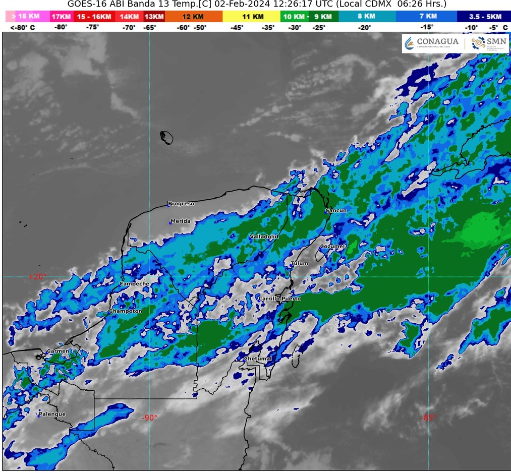 En la Península de Yucatán, el cielo estará medio nublado la mayor parte del día y sin lluvia en Campeche, Yucatán y Quintana Roo. El ambiente será fresco por la mañana y templado a cálido por la tarde con viento del este y sureste de 10 a 25 kilómetros por hora con rachas de 30 a 40.