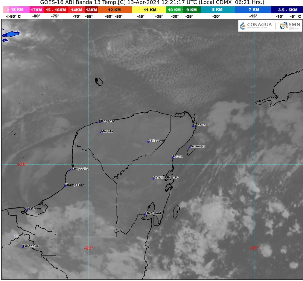 Para la Península de Yucatán se espera cielo medio nublado a nublado, con chubascos y lluvias puntuales fuertes en Campeche y Quintana Roo, lo que podría ocasionar encharcamientos e inundaciones. En Yucatán, se espera un día sin precipitaciones. Por la mañana, se sentirá un ambiente fresco a templado, mientras que durante la tarde el ambiente será caluroso a muy caluroso. Se espera además viento del componente norte con rachas que podrían alcanzar los 40 a 60 km/h.