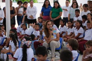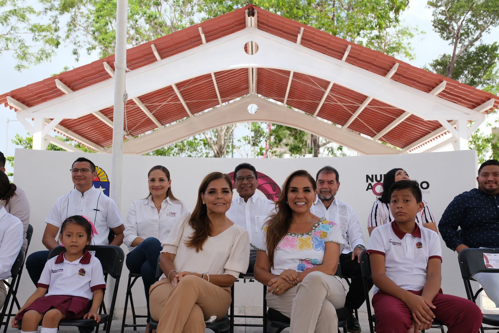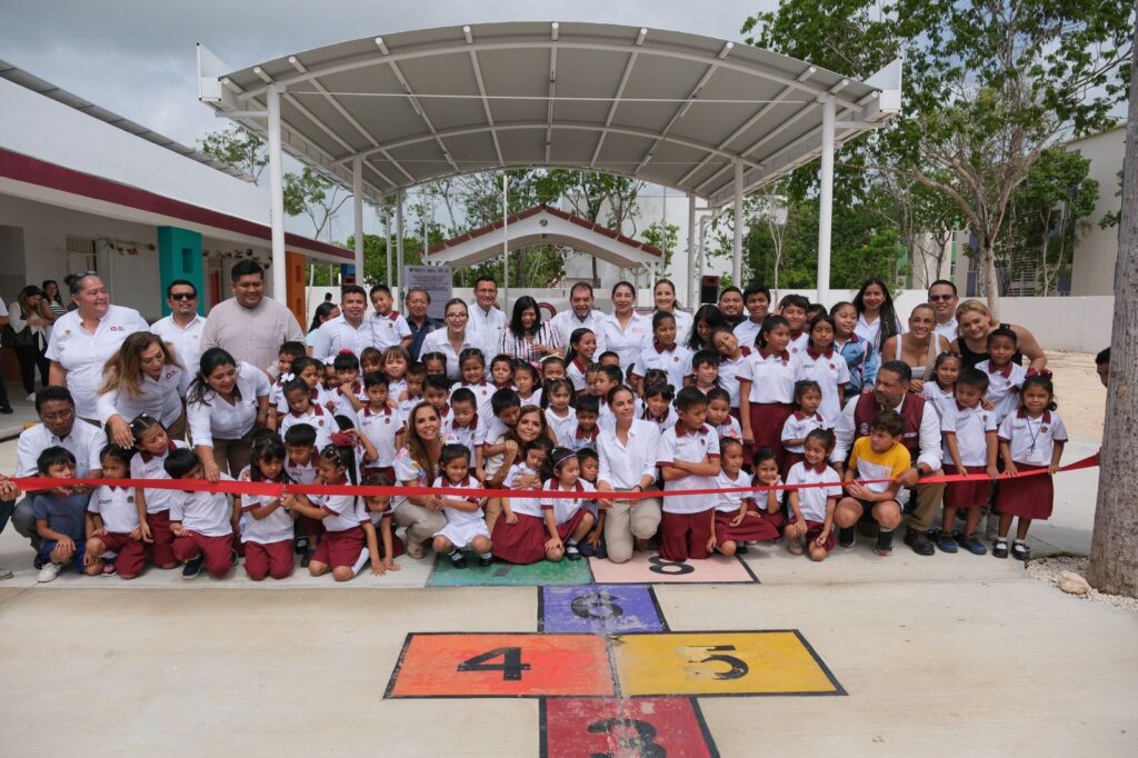 La gobernadora Mara Lezama Espinosa inauguró un Arco Techo en la escuela preescolar “Hermenegildo Galeana” del fraccionamiento Paraíso Maya, en beneficio de 87 niñas y niños, así como a sus maestros y personal de apoyo educativo.