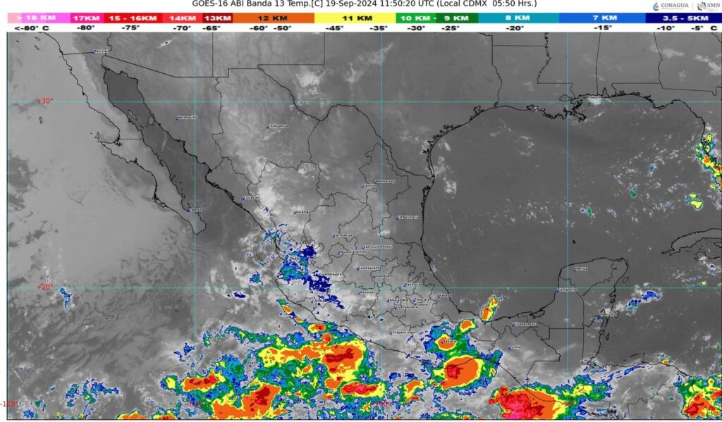 A su vez, la onda tropical No. 23 se desplazará sobre el sur y occidente de México, lo que generará lluvias puntuales muy fuertes en Guerrero y Michoacán; y puntuales fuertes en Colima y Jalisco.
