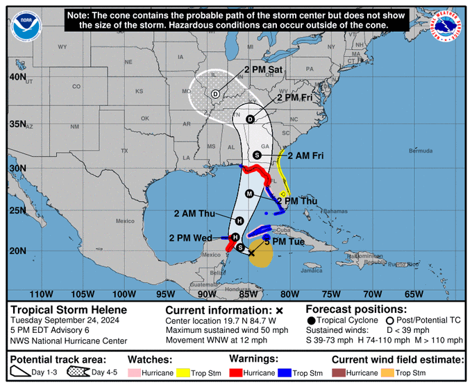 Un video publicado por el Instituto Cooperativo para la Investigación en la Atmósfera (CIRA, por sus siglas en inglés) en su cuenta de X, se puede ver en alta resolución de la circulación de bajo nivel de Helene.
