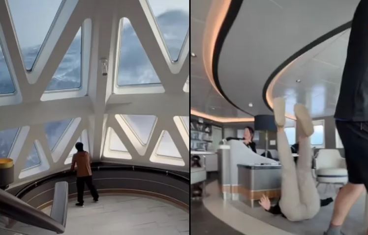 En el video compartido se puede ver a los pasajeros correr por los pasillos de la nave, tambalear y caer a los gritos a causa de las olas, no sin dejar de filmar las impresionantes escenas con sus teléfonos.