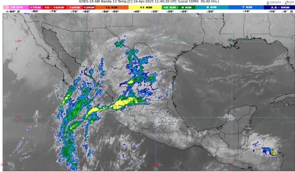 Finalmente, una circulación anticiclónica en niveles medios de la atmósfera y el bajo contenido de vapor de agua, mantendrán baja probabilidad de lluvia y ambiente vespertino caluroso a muy caluroso en la mayor parte de la República Mexicana.