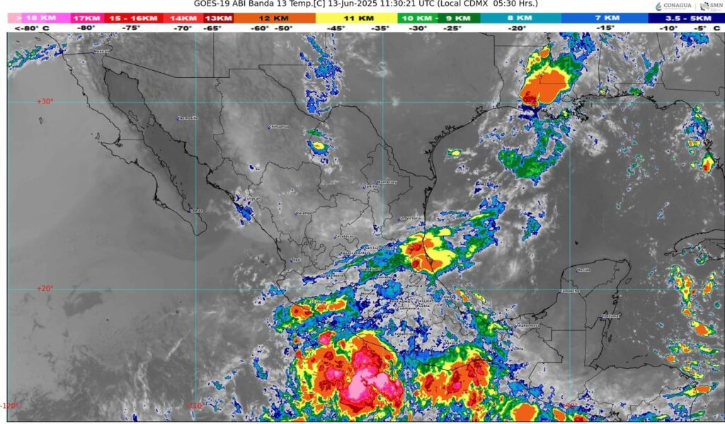 Además, las lluvias estarán generadas por la interacción de estos sistemas con el potencial ciclón tropical CUATRO-E, que se localiza al sur de las costas de Guerrero y que continúa intensificándose, lo que incrementará la entrada de humedad hacia la Península.