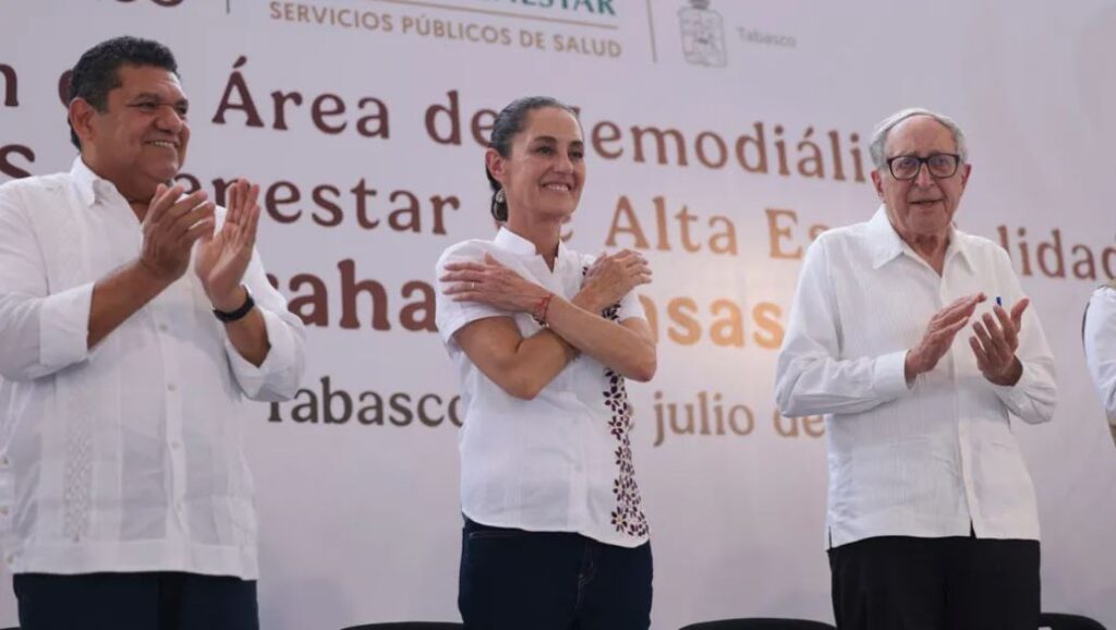 Al encabezar el acto de inauguración de la ampliación del área de hemodiálisis del Hospital IMSS-Bienestar de Alta Especialidad Dr. Juan Graham Casasús, en la capital del estado, la mandataria garantizó una inversión de dos mil millones de pesos para infraestructura en salud en Tabasco.