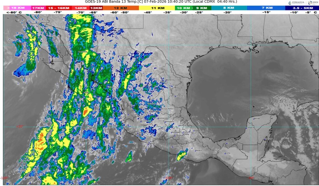 Sin embargo, prevalecerán temperaturas frías a muy frías en zonas serranas de la Mesa del Norte y Mesa Central en horas nocturnas y matutinas.