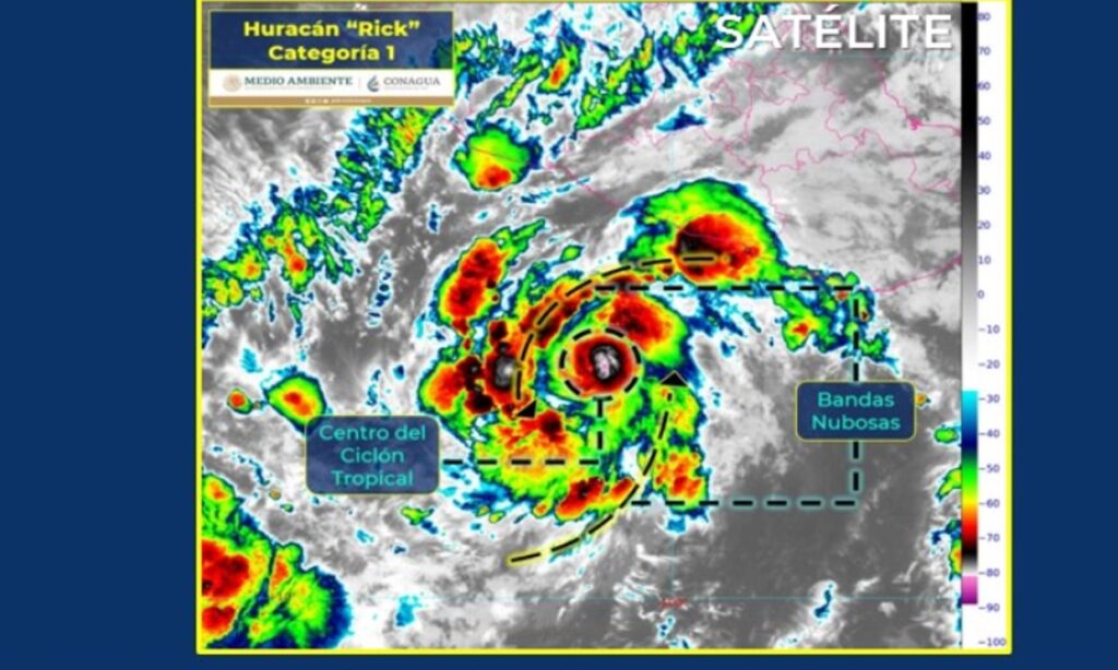 Las bandas nubosas del huracán provocarán lluvias muy fuertes en Michoacán, Puebla y Morelos. La CONAGUA prevé que “Rick” se convierta en huracán de categoría 2 para el domingo 24 de octubre.