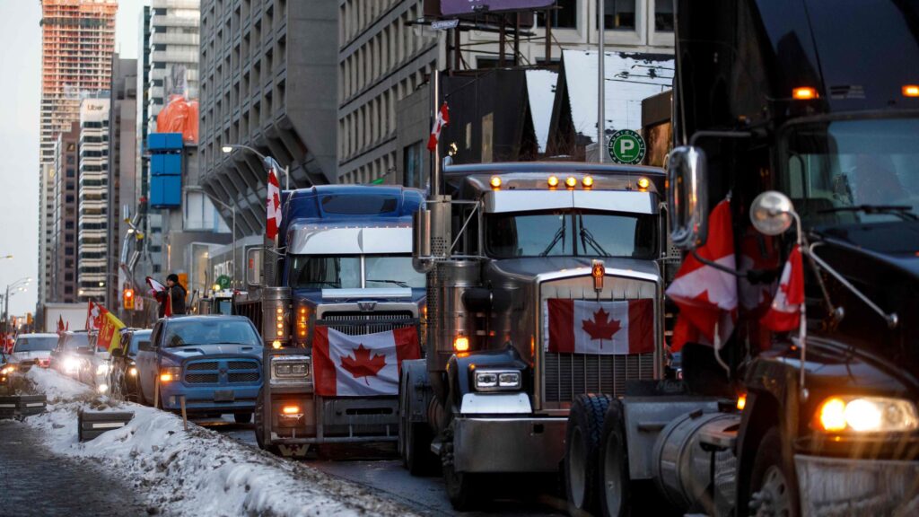 Canadá impuso la vacunación obligatoria desde el 15 de enero para los camioneros transfronterizos. Estados Unidos puso en marcha la misma disposición el 22 de enero. Centenares de conductores del oeste canadiense condujeron miles de kilómetros a Ottawa para protestar. Otras unidades procedentes de Ontario, Quebec y Nueva Escocia se sumaron, al igual que grupos que exigen el fin de distintas medidas, tales como el pasaporte de vacunación y el estado de urgencia sanitaria. De acuerdo a la policía de la capital de Canadá, la manifestación convocó el pasado fin de semana a más de 10.000 personas. La Alianza canadiense de camiones, que se ha opuesto al convoy de inconformes, ha estimado que más del 85% de los conductores que cruzan a suelo estadounidense están vacunados.