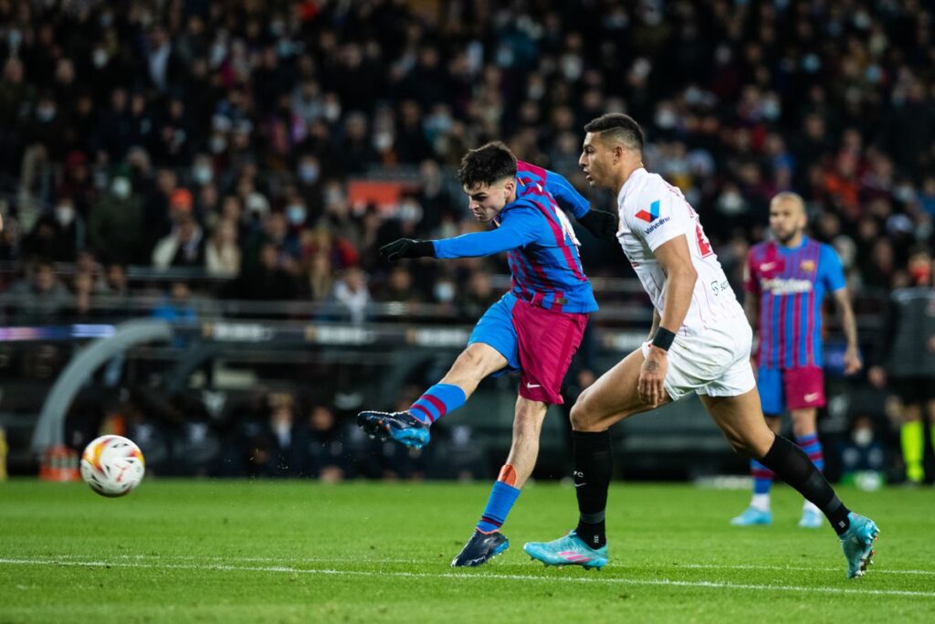 Los barcelonistas perseveraron en su ofensiva, fluidos y pacientes en el inicio de la jugada y negados en el último pase y la definición, demasiado precipitados y reducidos por la contundencia de Koundé y Diego Carlos y la omnipresencia de Bono. Ni siquiera Pedri, excelente con la cintura, parecía saber cómo puntear ante Bono. Había mucha impaciencia y faltaba precisión para descerrajar la portería del Sevilla. El desbocado ataque azulgrana, reiterativo en las pérdidas, comportaba el contragolpe del plantel de Lopetegui.