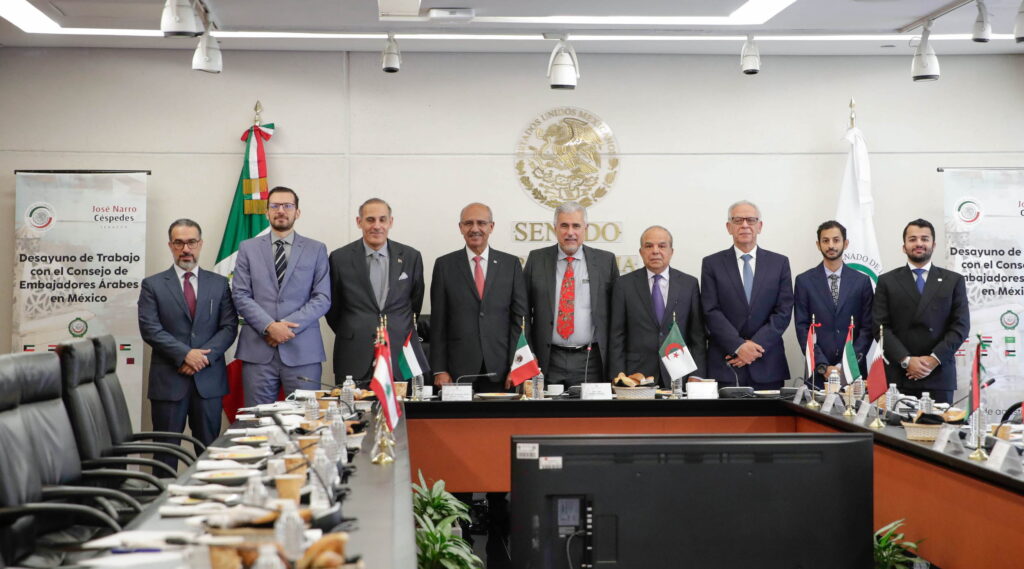 El vicepresidente del Senado de la República, José Narro Céspedes, se reunió con embajadores de países árabes en México con la finalidad de estrechar vínculos culturales, económicos, comerciales, políticos, educativos y diplomáticos de nuestro país con esas naciones.